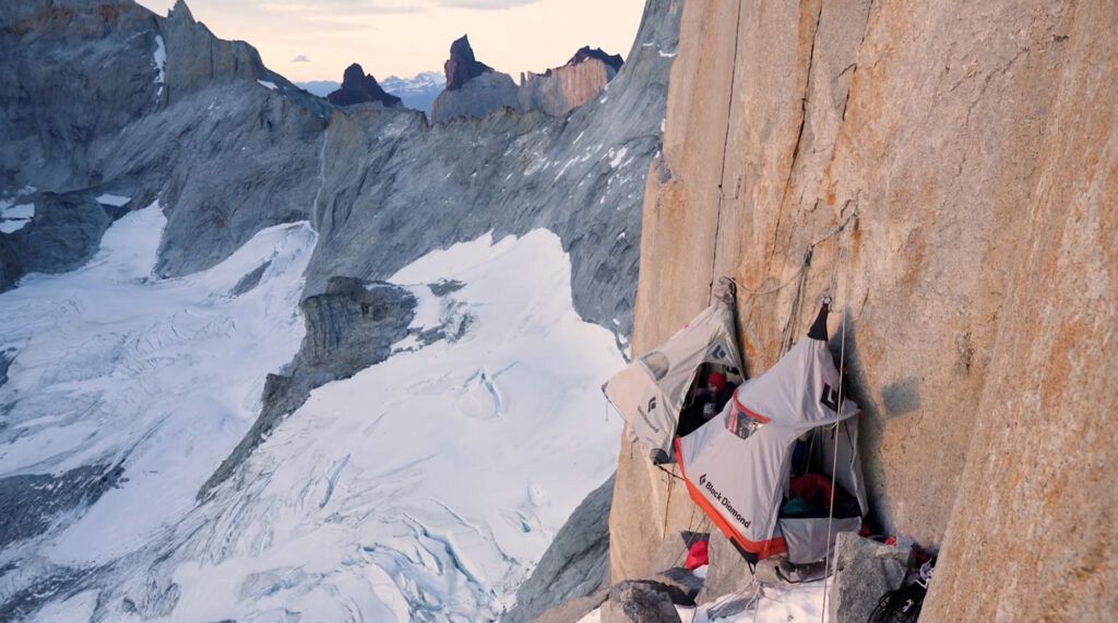 Achttien jaar geleden zag de Belgische klimmer Siebe Vanhee een film waarin zijn landgenoten Sean Villanueva O’Driscoll en Nicolas Favresse de iconische Torre Central in Patagonië beklommen. Nu doet hij het zelf en raad eens wat: zijn twee helden gaan met alle plezier weer mee. De drie benaderen de steile wand in Chili met opvallend veel humor en vrolijkheid, maar allesbehalve met twee vingers in de neus. Ze bivakkeren tegen de wand, de een speelt gitaar, de ander fluit, de derde maakt popcorn en scheert zich met een aansteker (!), maar ‘s ochtends worden ze helemaal besneeuwd wakker. “Als je in Patagonië denkt ‘wat een shit weer’, wacht dan maar, want over vijf minuten is het nog erger.” Dit is letterlijk ‘big wall climbing’. Maar de sfeer bij deze Riders on the Storm is niet stuk te krijgen. Ook het lied van The Doors komt nog terug.